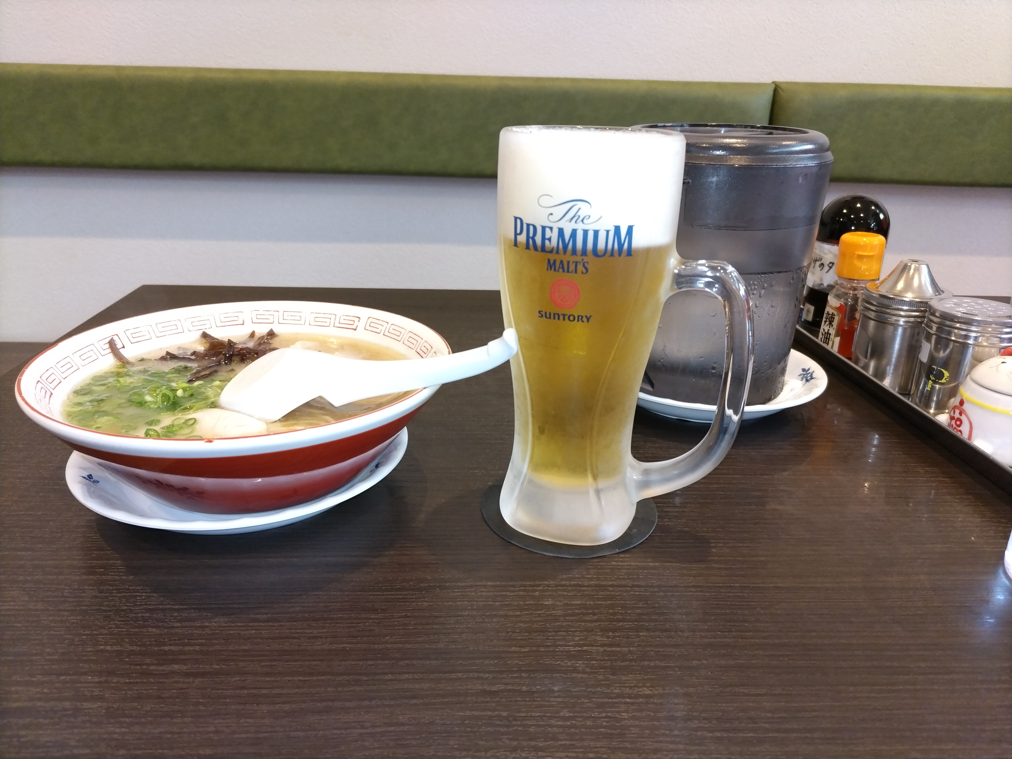 | 感想(コメント) | 久留米ラーメン来福軒さんを訪問しました。 昼の営業が15時終了ラストオーダー14時50分でした。 訪問した時間が14時40分だったのでギリセーフのタイミングでした。 場所はJR久留米駅の直ぐ横にあり電車の待ち時間に行くのが丁度いい感じです。 本日はシンプルにラーメンを注文しました。 スープがとってもあっさり系でコテコテラーメンが苦手な方にはおすすめのお店です。 麺はコシが強くて食べ応えがありとても美味しく頂きました。 丁度歩き疲れて汗もかいていたのでビールがとても美味しかった(^^♪ |