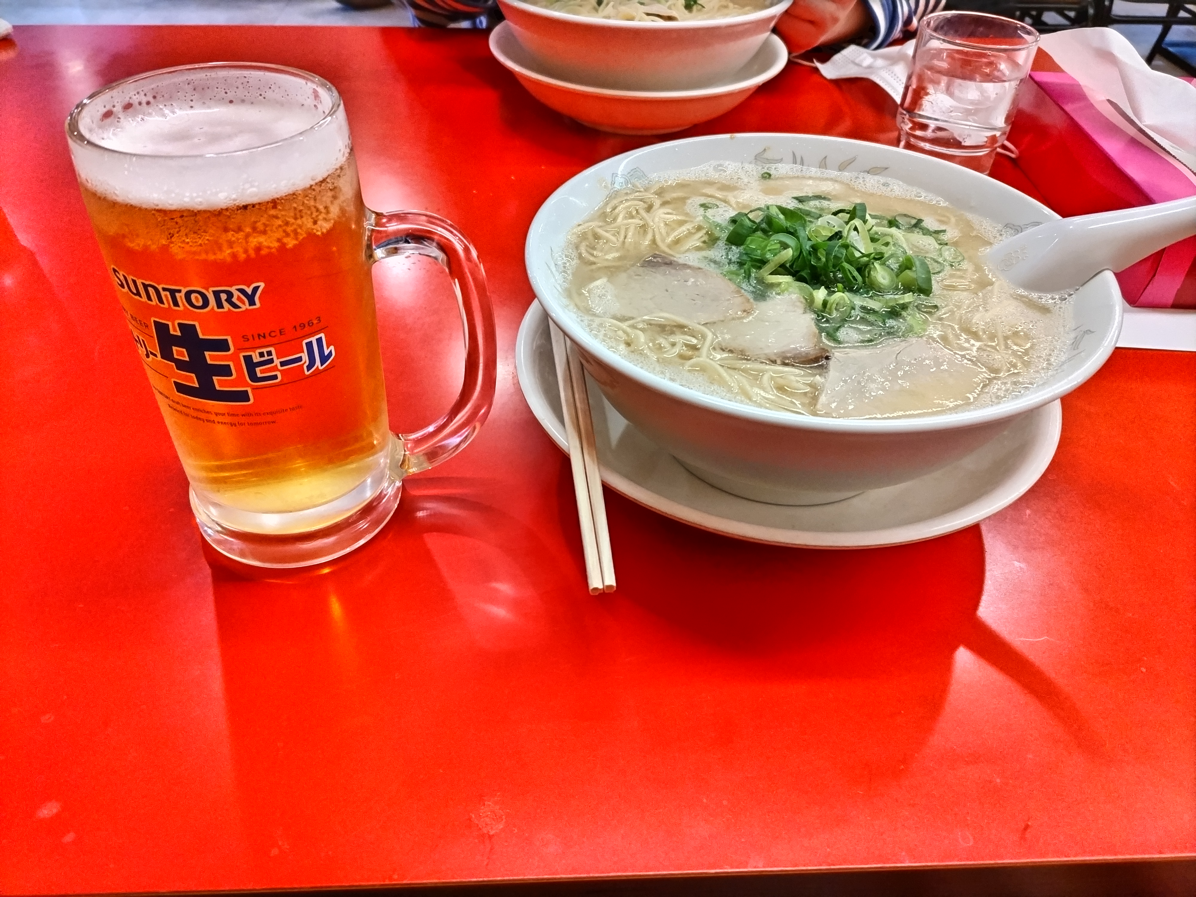 大盛ラーメンとビールを注文!ボリューム満点です。