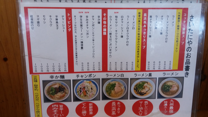 | 感想(コメント) | 初糸島上陸です。 まず行くことのない糸島に美味しいラーメンを食べに行きました。 ご存知の通り西谷家前原店です。 西谷家と書いてサイタニヤと呼びます。^^ 天気も良かったので国道202号をひたすらバイクで行きました。 西谷家のラーメンの特徴は超コッテリ系とあっさり系を食べれることです。 前西谷家の野方店に行ったときはコッテリ系を食べました。 とにかく西谷家はそのドロドロしたコッテリスープが人気を集めています。 しかし本日はあっさり系のラーメン白を食べました。 ネギ盛りもトッピング。 スープはやはりあっさりしています。 でも、やはり美味しくて飲みやすい。コッテリが苦手な方は ぜひこのあっさりスープを注文してください。 麺は細麺でチャーシューは薄切りのチャーシューで美味しい。 また、学生には優しい店で学生支援ラーメンがあります。 つまり値段は一緒で麺の量が増量してある。 口コミではチャンポンも美味しいということ。 |